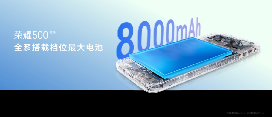 不僅性能拉滿,榮耀500系列續航能力也全面升級,搭載8000mAh青海湖大電池,再度刷新檔位手機電量紀錄,成為檔位唯一的“雙八”規格產品,真正實現“性能與續航雙雙拉滿”,榮耀500系列不做取舍,為用戶提供一步到位的旗艦級體驗。