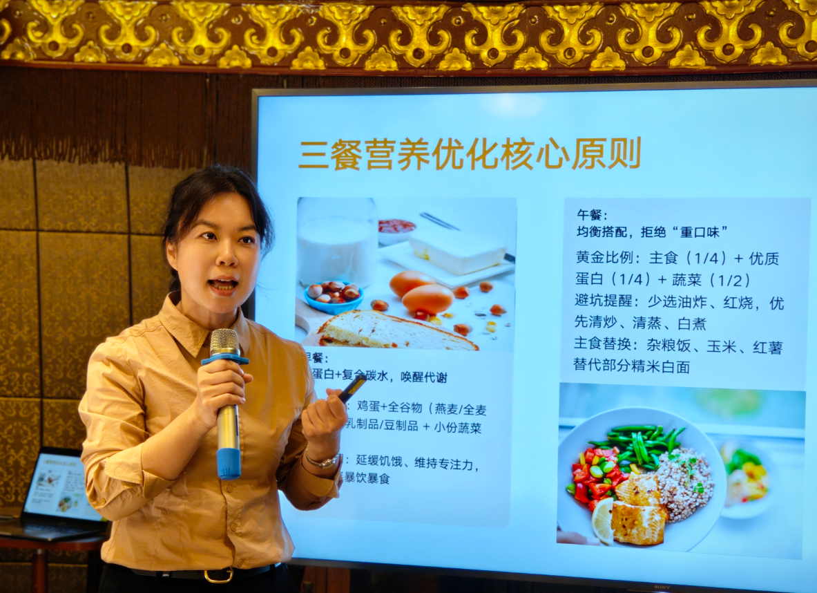 在緊張的議程之余,活動還特別設置了“營養健康:獻給伏案工作者的營養優化指南”環節。國家二級營養師、大元說創始人崔園園為與會者帶來了實用的營養健康知識分享。